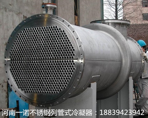 不銹鋼列管冷凝器 按材質(zhì)分為碳鋼列管式冷凝器、不銹鋼列管式冷凝器和碳鋼與不銹鋼混合列管式冷凝三種。按形式分為固*管板式、浮頭式、U型管式換熱器。按結構分為單管程、雙管程和多管程。傳熱面積0.5-500平方米??筛鶕?jù)用戶需要定制。適用于在化工、輕工、冶金、制藥、食品、化纖等工業(yè)中做各種用途的換熱設備,尤宜于做冷凝器,代替原有的石墨、玻璃冷凝器。使用后效果顯著。